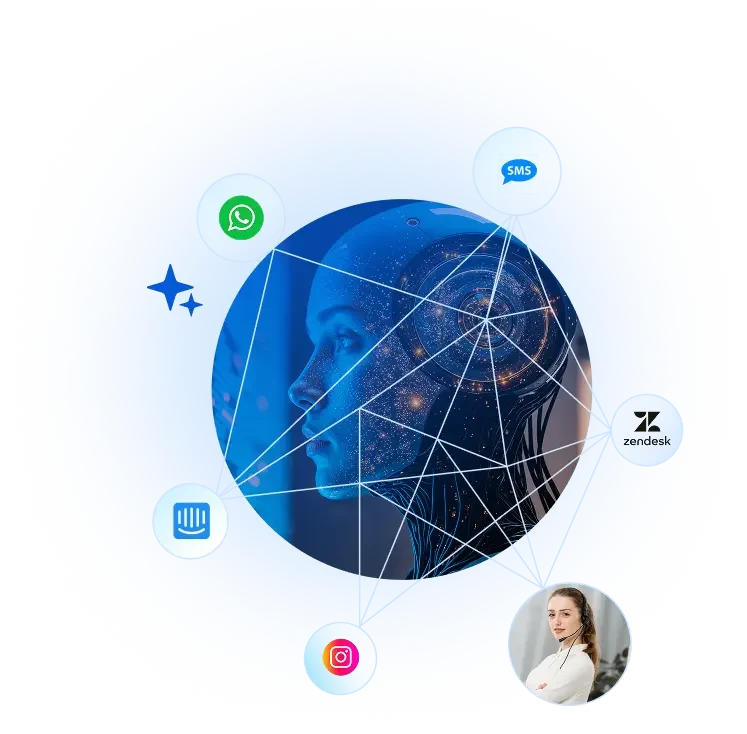 Agentes AI e atendimento humano atendendo juntos todos seus canais